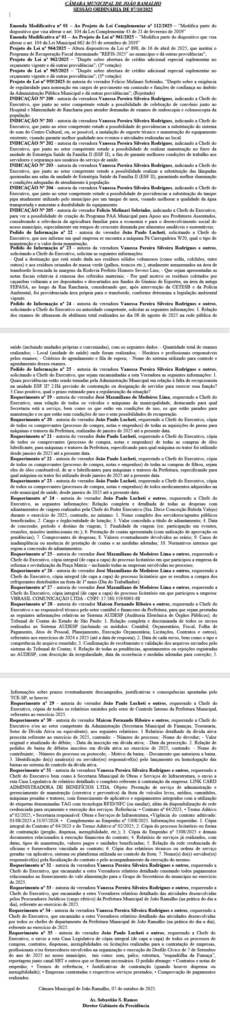 CÂMARA MUNICIPAL DE JOÃO RAMALHO SESSÃO ORDINÁRIA DE 07/10/2025