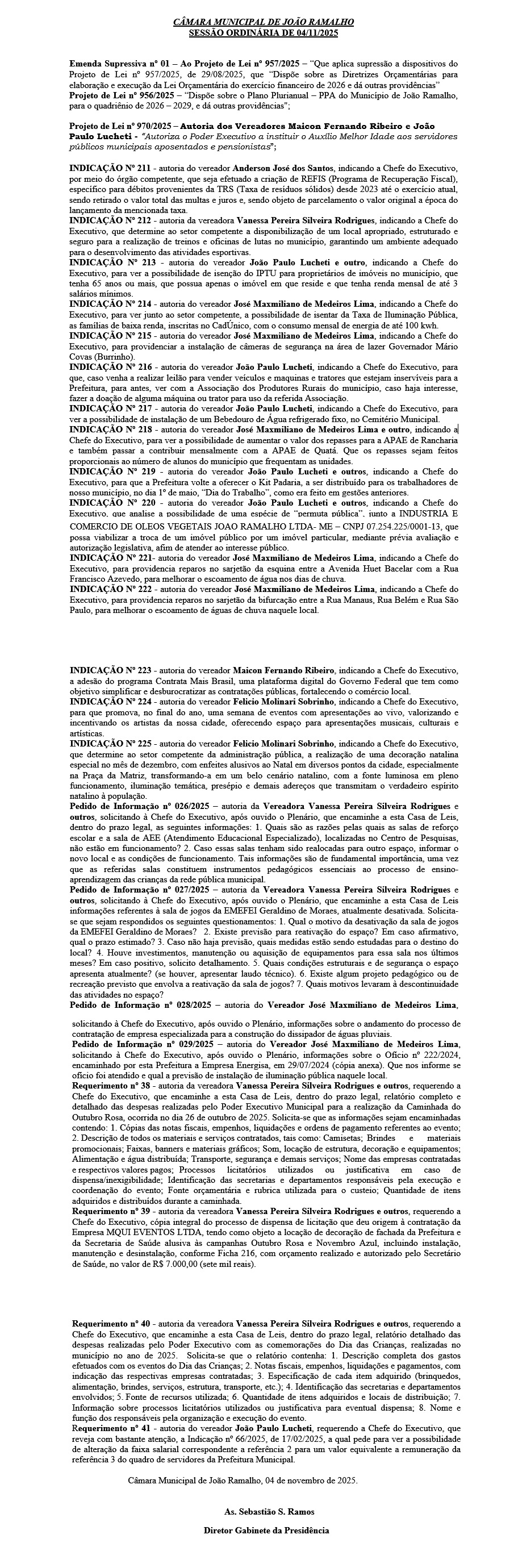 CÂMARA MUNICIPAL DE JOÃO RAMALHO SESSÃO ORDINÁRIA DE 04/11/2025